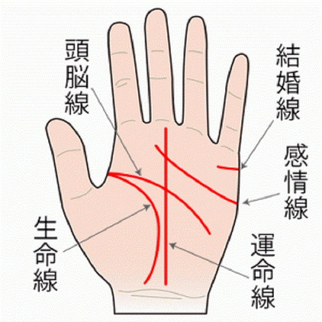 そこで今回は、「手相占い」で主要となる5つの線「生命線」「結婚線」「運命線」「感情線」「頭脳線」の見方について詳しくお話しいたします。