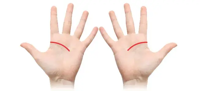 たいていの人はカーブを帯びた頭脳線を持っていますが、なかにはまっすぐに伸びた直線の頭脳線を持っている人もいて、淡白なリアリストを表します。