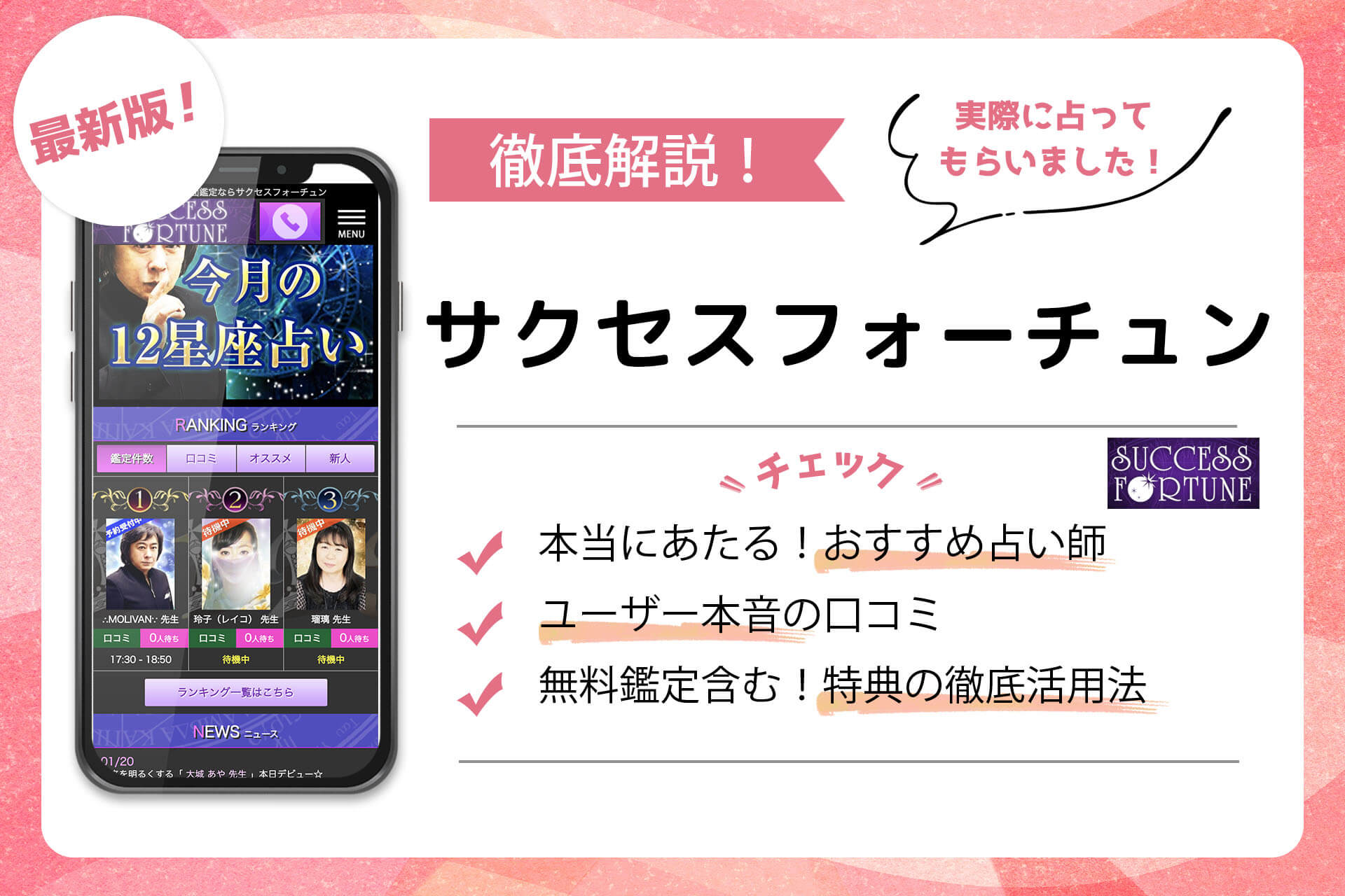 今回は、そんな電話占いサクセスフォーチュンの中でも特に「当たる」と人気の高い占い師5人を、公式サイトの口コミやランキングをもとにご紹介していきます!これから利用を考えている方、どの占い師がいいのかなと迷っているという方は、ぜひチェックしてみてくださいね。
