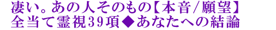 あの人が“リアル”に浮き彫りに……。抱く本音も願望もつぶさに紐解き、あの人自身も気付いていない心の奥の奥まで抉(えぐ)り出します。明らかになるあの人の姿。受け入れる覚悟ができたなら、お進みください。