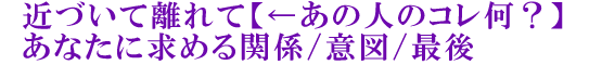 近付いた距離に舞い上がり、離れたと感じて落ち込む。何度同じことを繰り返せば、あの人と気持ちを繋げることができるのでしょうか。今、あの人が求めている関係性、この距離感の意図。あの人の心、お話しします。