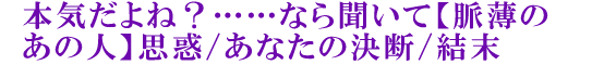 あなたとあの人。二人の絆を繋ぎしものからの言葉と、強まる縁