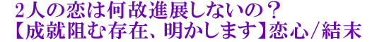 こんなに想っているのに、2人の恋は何故進展を見せないのか。それは実は、あなたの想いを阻んでいる存在があるからなのですよ。その存在を明らかにしていくとともに、この恋の結末の詳細に迫っていきましょう。