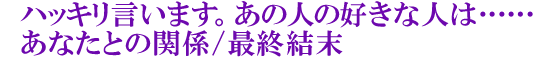 ハッキリ言います。あの人の好きな人、あなたへの想い