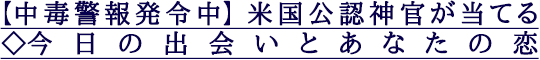 「愛を取り戻したい!」それは誰もが一度は思うことでしょう。納得のできる別れ方ができる人はほんの一部。未練と後悔にまみれて、グチャグチャになっているあなたに、米国公認神官が【復縁占】を授けましょう。