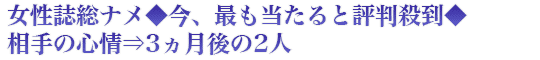 女性誌の占い特集の常連と言っても過言ではない水晶玉子が、あなたと大切なあの人のことを占います。あの人が今、あなたに対して抱いている想い、2人の未来、3ヵ月後の関係まで、つつみ隠さずにお伝えします。