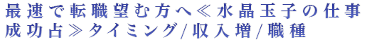 最速で最高の転職が叶います!あなたに最適な職種や働き方、転職活動のタイミング、収入アップのための注意点、そして3年後のあなたが得ている報酬や立場など、あなたが知りたいすべてを水晶玉子がお伝えします。