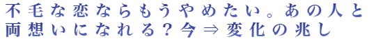 【この恋、続ける?】なかなか進まないあの人との恋……あの人は、本当は何を思ってるの? そしてこの先、2人の間に、何か良いチャンスはやってくる? 『不毛な恋』を『実りある恋愛』に変えていきましょう!
