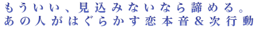 【この恋、諦めた方がいい?】なかなか進まないあの人との恋……あの人は、本当は何を考えているのでしょうか。そしてこの先、2人の間に、何か良いチャンスはやってくる? モヤモヤ恋愛に、決着をつけましょう!