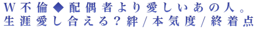 あなたが相手じゃなきゃダメ? あの人がW不倫に向けている本気度