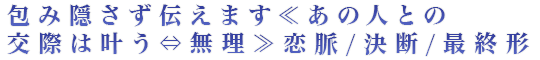 交際決定?それとも…。相手の最終決断は、実はもう決まっています! 相手の今の恋状況やあなたに抱く正直な本心、そしてこの先相手が下す決断まで…ズバリありのままの真実を隠すことなくお伝えします。