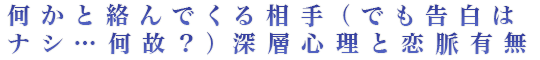 【あの人の行動の謎】何かと絡んでくる相手……でもハッキリとした愛の言葉はありません。あの人は、何を考えているのでしょうか? お相手の深層心理を探って、2人の恋に脈があるかどうかを、お伝えしましょう。