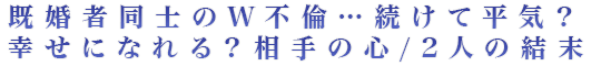 【ダブル不倫の行方】あなたとあの人は、禁断の関係を結んでいます。ダブル不倫を続けていて、幸せになれるのでしょうか? お互いの配偶者はどう思っている? 2人の愛の《最終結論》について、お教えします。