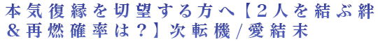 本気で復縁をする覚悟がある人だけご覧ください……【あの人との仲が再燃する確率】をズバリ予言! あの人のあなたに対する今の想い、別れの本当の理由、2人の未来はどうなるのか、すべて具体的にお伝えします。