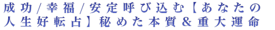 あなたの人生好転の鍵を探ります! まだ内側に潜んでいる運命を深掘りし、成功をもたらすためのヒントをお伝えしましょう。秘められた人生の本質を辿り、望む人生への道しるべを逃さず手に入れて下さい。