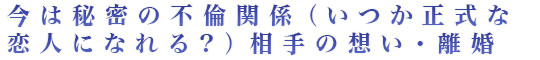 「今は秘密の関係だけど、あの人との愛を絶対に叶えたい」あなたの強い願いをしっかり受け止めて、幸せ成就を引き寄せる不倫占。2人が正式な恋人として結ばれるのかをズバリ鑑定! 勇気を出して聞いて下さい。