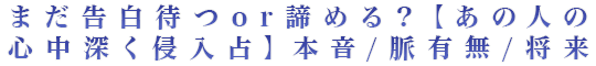 待っていたら何か変化はある…? 動きのない恋に、あなたの不安は募るばかり。だけどこの恋、新たな兆しが見えていますよ! ありのままの真実を解き明かし、2人が幸せになるための道筋を示します!