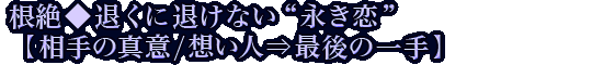 もう後戻りはできない、長すぎる恋。私が終わらせてあげましょう。相手の真意と恋焦がれている人物の名をズバリお伝えします。そしてあの人が最後に打ってくる一手と、2人の最終関係も明らかに!!