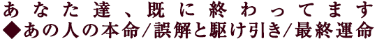 あの人との間に特別な縁はある? 今の関係以上の進展は期待できない? ここであなたが知るべきあの人の本音と誤解、あなたへの駆け引きと本命相手について、真実のみを洗いざらいお伝えします。