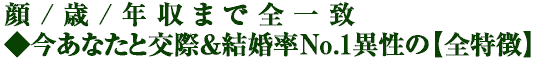 『いい出会いがない。このまま一生独身なのかも……』あなたがそう思ってしまうのは、縁ある人物を見誤っているからです。交際可能性、結婚率共にNo.1の異性を特定し、その全特徴【顔/歳/年収】まで的中させます。