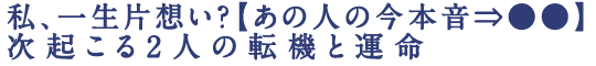 このまま一生片想いなの? そんな不安さえも抱く程、あの人の本音が分からず苦しんでいるのですね。今、あの人の心を独占しているものは何か。そして次に起こる2人の転機と変化する運命を透視で暴き尽くします。