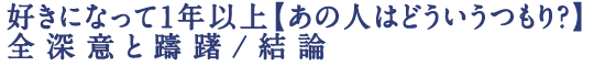 あなたがあの人を好きになってから、もう長く時が経っていますね……。待っても待っても、具体的な反応を示してくれないあの人。そんなあの人の深意と躊躇の理由を、ここで全てお話しします。覚悟は宜しいですか?