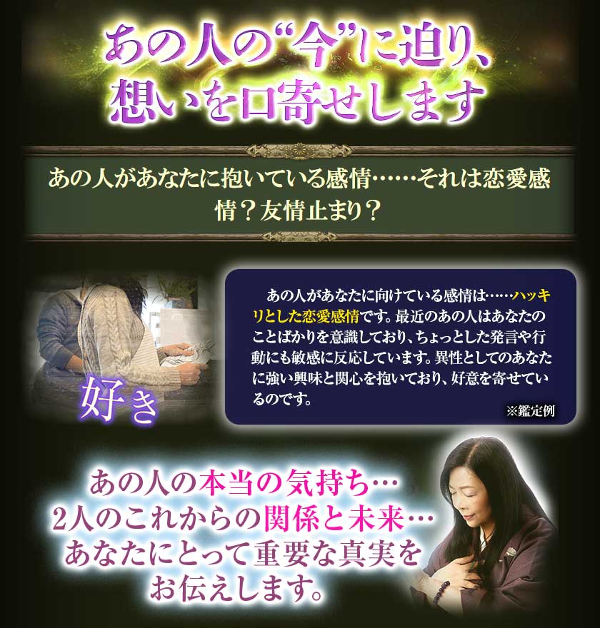 あの人の想いがこの先どこに行きつくのか、この恋の果てまで霊視します