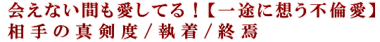 不倫という切ない恋に、それでもあなたはあの人への愛を気丈に貫いているのね。けれど、それが一方通行の想いだとしたら? あの人の曖昧な態度に1人傷付くのはもうやめて、今こそ本当の幸せを手に入れましょう。