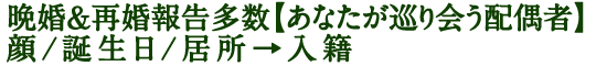 『諦める前に必ず見て頂戴!』【晩婚者】も【再婚希望者】も次々結婚し報告が届く“母の成婚確約占”あなたがこの先巡り会う運命のお相手の顔、誕生日、居所……そして結婚を約束する日まで明確に提示します。