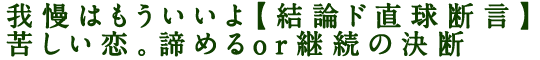 現段階での結論を言うよ。この恋諦めるべきか続けるべきかの決断