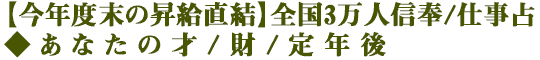 今年度末の昇給直結◆転職したいと思ったり、本当に現職を辞めていいのか悩んだり……生活に直接響く仕事の問題。あなたの才能と現職/転職の可能性を見極め、定年後まで安泰に暮らせる最適キャリアを特定します。