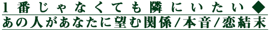 『たとえあの人の1番になれなくても、ずっと隣にいられるのならそれでいい』一途で大切な恋をしているあなたの想いに、あの人はどんな気持ちを返してくれるのでしょう。あの人が望む関係と本音をお伝えします。