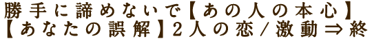 もう脈がないと決めつけて、あの人との恋を勝手に諦めかけていませんか? あなたが初めて知る『あの人の本心』と、あの人に抱いている『重大な誤解』を暴き、2人の恋のあるべき姿と、結末についてお伝えします。