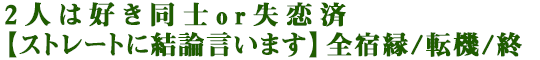 もしかして、これ以上あの人を追っても無駄……? 不安ばかりが募る片想い。2人の現状から訪れる転機、あなたとあの人の間にある恋の可能性を洗いざらい解き明かします。最後の告白まで、心してお聞きください。