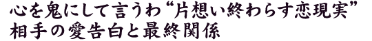 “心を鬼にしてビシバシ言わせて頂くわ!”相手の中で決まっている恋結論、想いを告げる対象、二人の最終関係……どんなに辛くても、これが現実です。全て受け入れ、向き合う覚悟ができている方のみご覧ください。