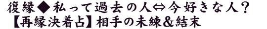 あの人にとって私ってもう過去の人?⇔今も好きな人? 別れた相手を忘れられない方のための再縁決着占。あの人はあなたに未練があるのか、このままあの人を想い続けたら復縁できるか、本鑑定でハッキリさせます。