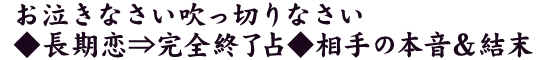 あなたは長い間あの人を想い続けてきたのね。だからこそ、そろそろ結末をハッキリさせ、決着をつけるべきです。あの人が今どのようなことに心を傾け、二人は最終的に結ばれるのか、本鑑定で完全に終わらせます。