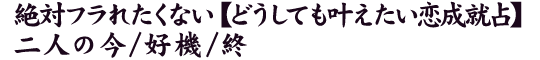 ※絶対恋叶えたいあなたに※本気で好きで、想い続けてきた相手と結ばれたいと思うのは当然のことです。ここでは恋愛成就のための鑑定を行います。二人の現状、好機、結末……全て見ていくのでよくお聞きください。