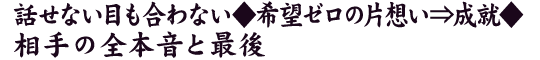話すどころか、目すらも合わない……。ご自身の片想いを希望薄と感じるなら、本鑑定を頼ってください。あなたのそのモヤモヤを取っ払い、恋叶えるため、相手の本音、二人の恋現実、結末を詳細に見ていきましょう。