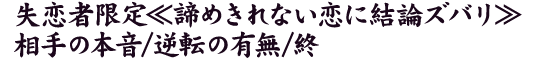 失恋したけど、諦めきれない……そんなあなたに、まずは一言。諦めなくて良いんだよ! 今あの人はどのような気持ちなのか本音を見ていき、恋の逆転の好機、好機をものにしたあなたが手にする未来をお教えします。
