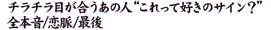 チラチラ目が合う片想いの相手……“脈ありなのか”それとも“気のせいなのか”本鑑定で明らかにしていきましょう。相手があなたに抱く率直な本音、二人が最終的に行き着く関係……全て知る覚悟はできていますか?