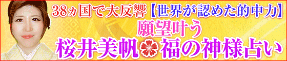 『次に来る占いはコレ!』世界38ヵ国で鑑定して来た、幸せを引き寄せる占い師・桜井美帆の福の神様占いが満を持して登場。日本の神様の中でも最もあなたを【開運】に導いてくれる最強な神様によって、精神的・経済的にも豊かになり『幸せな超開運人生』を歩める鑑定です。