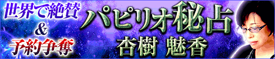 『頼れば全部180度好転!』世界各国で絶賛/予約殺到の【運命激変】神技秘術・パピリオ秘占が解禁◆「いつ」恋や結婚が叶い「どのように」現実が変わるか瞬時に当て抜き、運命や秘めた感情をありのまま映し出す。杏樹魅香だけが可能にした驚異の成就極占を一度ご体感下さい。