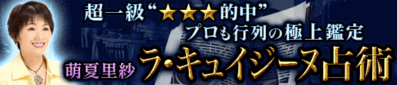 『リアルに現実当てる』とTVや雑誌でも大反響! プロも最高評価を下し、圧倒的な信頼と人気を誇る鑑定士【萌夏里紗】が生み出した“ラ・キュイジーヌ占術”が、苦難に焦げ付くあなたの運命に決断を与えます。現実を極上の幸福へ仕上げる特別鑑定を是非体感してください。