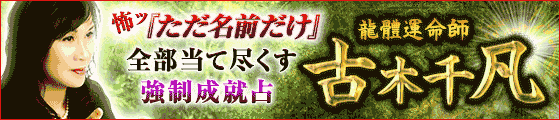 必要なのは『名前』だけ。運命の相手もあの人の想いも全部わかる【龍體運命師◆古木千凡】の鑑定は、特別な強い力を秘めた龍体文字で、名前にこめられた力や想いを最大限引き出してあなたの願いを叶えます。恋に仕事に結婚、あなたが手にする確かな未来をお確かめください。