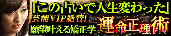 この占いがキッカケで『恋叶った』『人生変わった』各界大物・芸能VIP達がその的中力と成就力を実際に体験し絶賛! 人気占い師・飯島寛子の“運命正理術”で、正しい理の元、人生の歪みを矯正し幸福な結末に導きます。要らないものを捨てればあなたの願望は叶います。