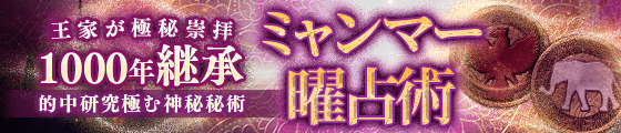 生まれ曜日だけで全てを見通す曜日占い。世界屈指の占い大国ミャンマーにて古来より重要視されてきた“曜日”であなたを支配する運命の法則を完全に読み解いていき、あなたの理想の人生を手に入れましょう。