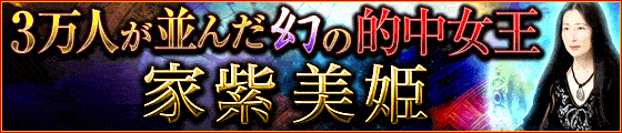 徹夜組続出! 行列伝説を巻き起こした的中女王【家紫美姫】奇跡の降臨! 圧倒的な的中力で極限まで現実を見抜き当て、真実のみ断言。その鑑定スタイルに熱狂者が続出、芸能人や経営者、政治家までもがトリコ。『あなたに突きつけるこの現実、わかっていただけますか?』