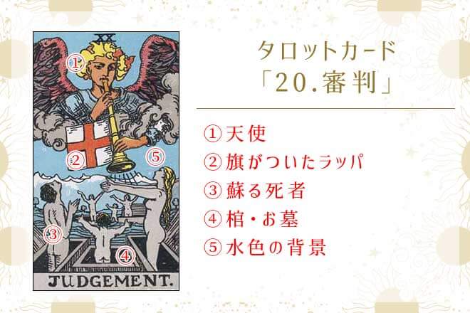 審判のカードに描かれているシンボルには、それぞれ意味があります。