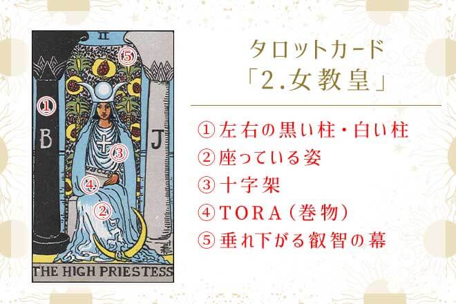 カードに何が描かれている?「2.女教皇」のシンボル
